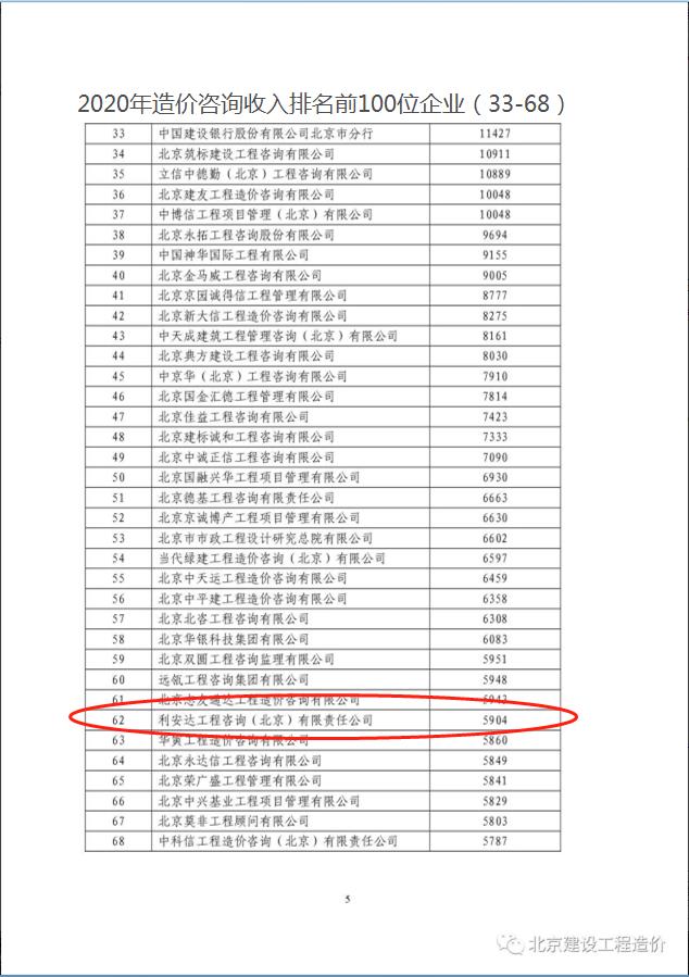 我公司多年來勇于在多方位拓展造價業(yè)務,不斷鞏固市場,同時積極參與中價協(xié)、京標價協(xié)、住建部、北京住建委等權威部委、協(xié)會組織的行業(yè)內綜合業(yè)務能力評審排名。經(jīng)北京市建設工程造價管理處公示,2020年度造價咨詢收入排名前100位,我公司排名第62位。