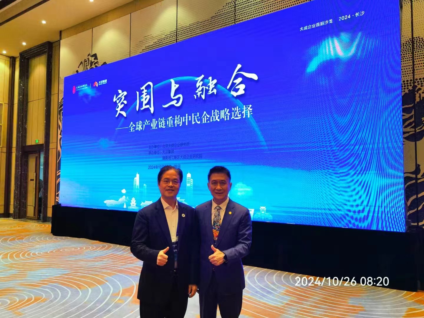 2024年10月25-26日,以“突圍與融合—全球產(chǎn)業(yè)鏈重構(gòu)中民企戰(zhàn)略選擇”為主題的第十六期大成企業(yè)首腦沙龍在湖南長沙成功舉行。本次沙龍由北京大成企業(yè)研究院主辦,大漢集團、湘江新區(qū)大成企業(yè)研究院承辦。第十、十一屆全國政協(xié)副主席黃孟復(fù),全國工商聯(lián)原副主席張元龍、謝伯陽等領(lǐng)導(dǎo)以及70余位國內(nèi)外知名大中型民營企業(yè)的董事長或主要決策人出席了本次沙龍。