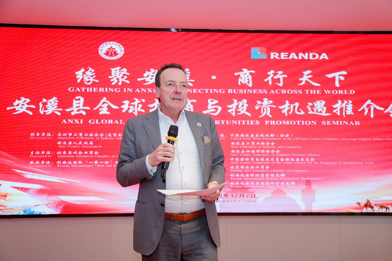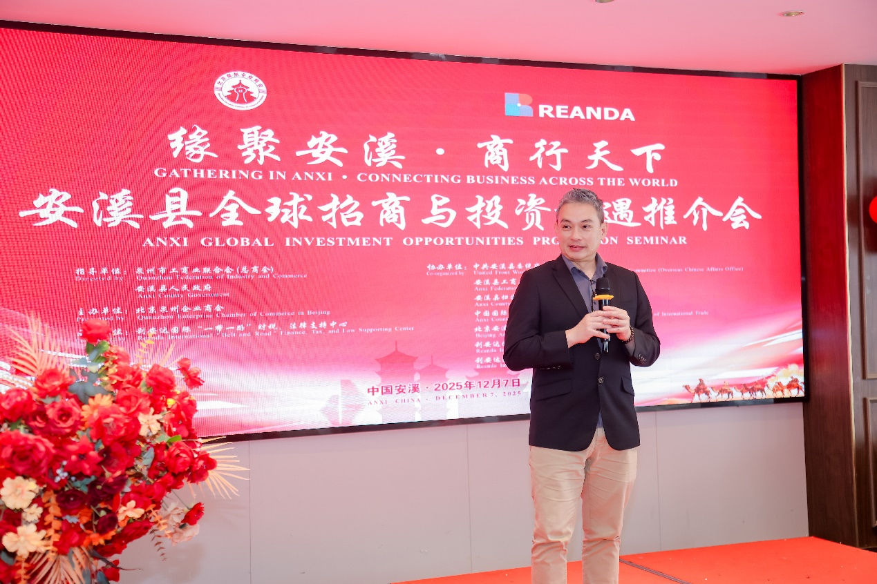 2025 年 12 月7日中午, 由利安達(dá)國際北京管理總部等單位協(xié)辦的“緣聚安溪 商行天下—安溪縣全球招商與投資機(jī)遇推介會(huì)”在安溪縣廣三和基金中心3樓宴會(huì)廳成功舉辦?;顒?dòng)在泉州市工商業(yè)聯(lián)合會(huì)(總商會(huì))及安溪縣人民政府的指導(dǎo)下,由北京泉州企業(yè)商會(huì)主辦,利安達(dá)國際“一帶一路”財(cái)稅、法律支持中心承辦,中共安溪縣委統(tǒng)戰(zhàn)部(僑辦) 、安溪縣工商業(yè)聯(lián)合會(huì)、安溪縣歸國華僑聯(lián)合會(huì)、中國國際貿(mào)易促進(jìn)委員會(huì)安溪縣委員會(huì)、北京安溪企業(yè)商會(huì)、利安達(dá)國際北京管理總部、利安達(dá)國際香港海外管理總部聯(lián)合協(xié)辦。海內(nèi)外企業(yè)家、商會(huì)代表、行業(yè)精英齊聚一堂,共探安溪產(chǎn)業(yè)升級(jí)路徑,共繪縣域經(jīng)濟(jì)全球化發(fā)展新藍(lán)圖。