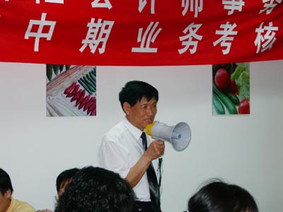 為做好事務(wù)所2006年度中期考核評(píng)選工作,實(shí)現(xiàn)事務(wù)所2006年初確定的關(guān)于“加強(qiáng)員工隊(duì)伍建設(shè),建立競(jìng)爭(zhēng)激勵(lì)機(jī)制”的工作目標(biāo)。事務(wù)所于2006年6月9日下午舉行2006年度中期業(yè)務(wù)考試,這是事務(wù)所脫鉤改制以來第一次在年度中期考核工作中舉行業(yè)務(wù)考試。事務(wù)所業(yè)務(wù)部門項(xiàng)目經(jīng)理及員工參加了業(yè)務(wù)考試。事務(wù)所副主任會(huì)計(jì)師洪蓓同志和質(zhì)量監(jiān)督管理委員會(huì)副主任李耀堂同志視察了考場(chǎng)工作情況,并發(fā)表講話強(qiáng)調(diào)了業(yè)務(wù)考試的重要性,讓大家充分認(rèn)識(shí)事務(wù)所考核的重要意義,希望大家都能考出好成績(jī)。