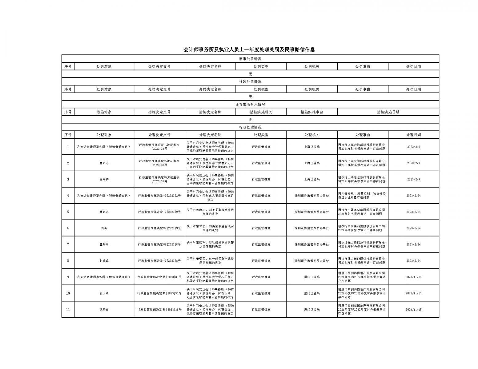 會計師事務所及執(zhí)業(yè)人員上一年度處理處罰及民事賠償信息