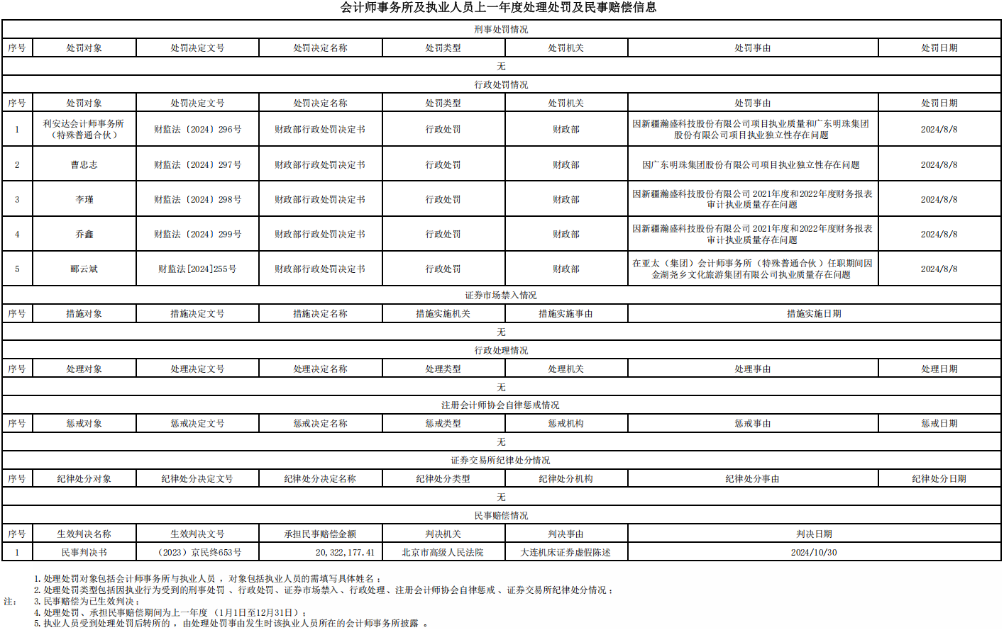 會(huì)計(jì)師事務(wù)所及執(zhí)業(yè)人員上一年度處理處罰及民事賠償信息
